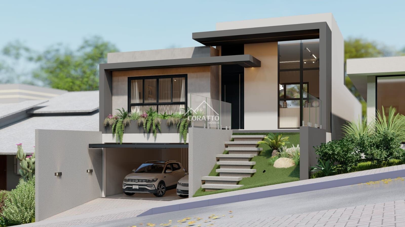 Composta por 3 dormitórios sendo 1 suíte, sala de estar, cozinha, banheiro social, lavabo, área de serviço, churrasqueira, garagem p/2 veículos e área de lazer com piscina.