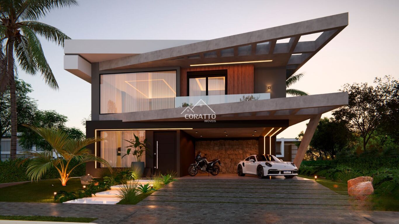 Composta por 3 suítes sendo uma master com sacada, sala de estar com lareira, sala de jantar, churrasqueira, lavabo, área de serviço, garagem p/2 veículos e área de lazer com piscina.