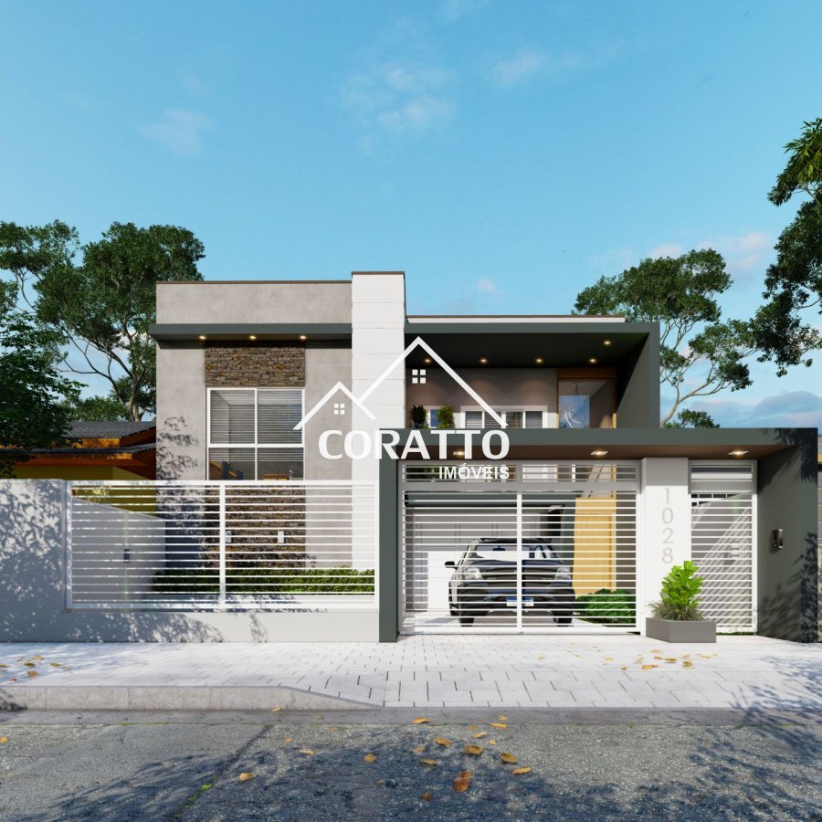 Com 231m² construídos, composta por 4 dormitórios (sendo 2 suítes), living integrado, sacada, banheiro social, lavabo, lavanderia, espaço gourmet com churrasqueira, banheiro externo e piscina, varanda, garagem p/ 2 veículos,acesso de veículos ao fundo do terreno, muros laterais e fechamento frontal.