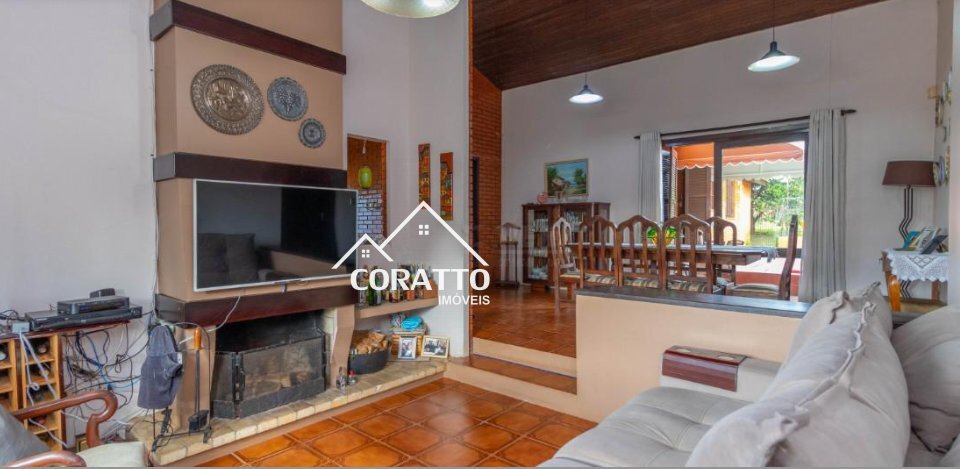 Conta com uma área total de 1350 m2 com ótimo índice construtivo.Composta por 3 dormitórios (sendo 1 suíte), cozinha, sala de estar e sala de jantar amplas, 4 banheiros,quiosque com churrasqueira, lareira,área de serviço, 2 garagens, portão elétronico e pátio todo cercado que garante toda segurança necessária.Além de contar com uma bela e grandiosa piscina próxima ao salão de festas,ou seja, perfeito para você e sua família viverem bem e com ótima qualidade.