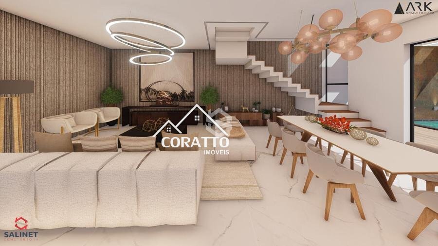 Composta por 2 suítes, 1 suíte master, sala de estar, sala de jantar, cozinha, lavabo, lavanderia, churrasqueira, piscina, pátio e garagem p/2 veículos.