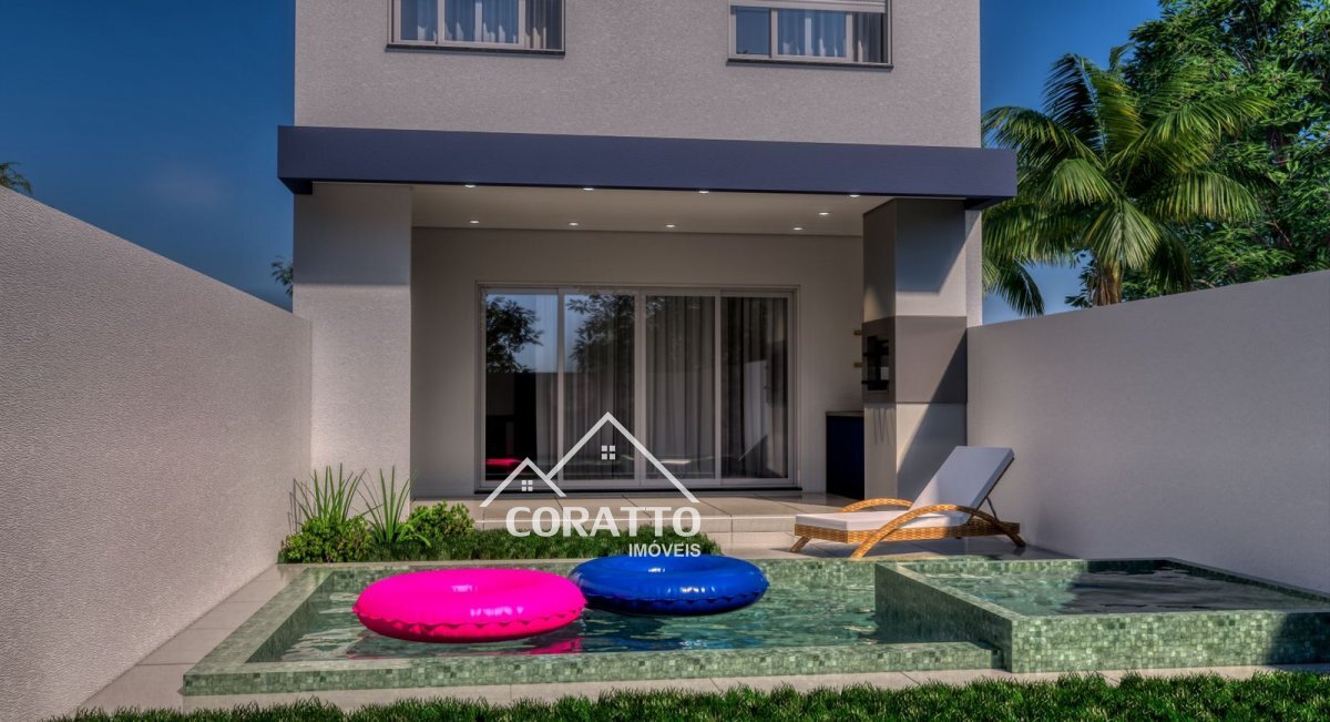Composto por 3 dormitórios (sendo 1 suíte), sala dois ambientes, cozinha conceito aberto, banheiro social, lavabo, área de serviço, espaço gourmet com churrasqueira,piscina (opcional) e garagem p/ 1 veículo.