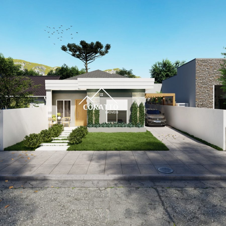Composta por 2 dormitórios (sendo 1 suíte), sala de estar e jantar, cozinha, escritório que pode ser usado como dormitório, banheiro social, espaço gourmet com churrasqueira, lavabo externo e garagem p/2 veículos.