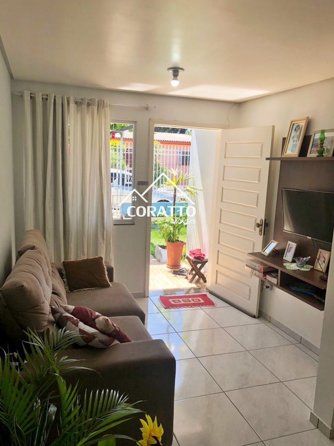 Composta por 2 dormitórios, sala de estar, sala de jantar, cozinha, banheiro social, área de serviço separada, churrasqueira e garagem p/2 veículos.