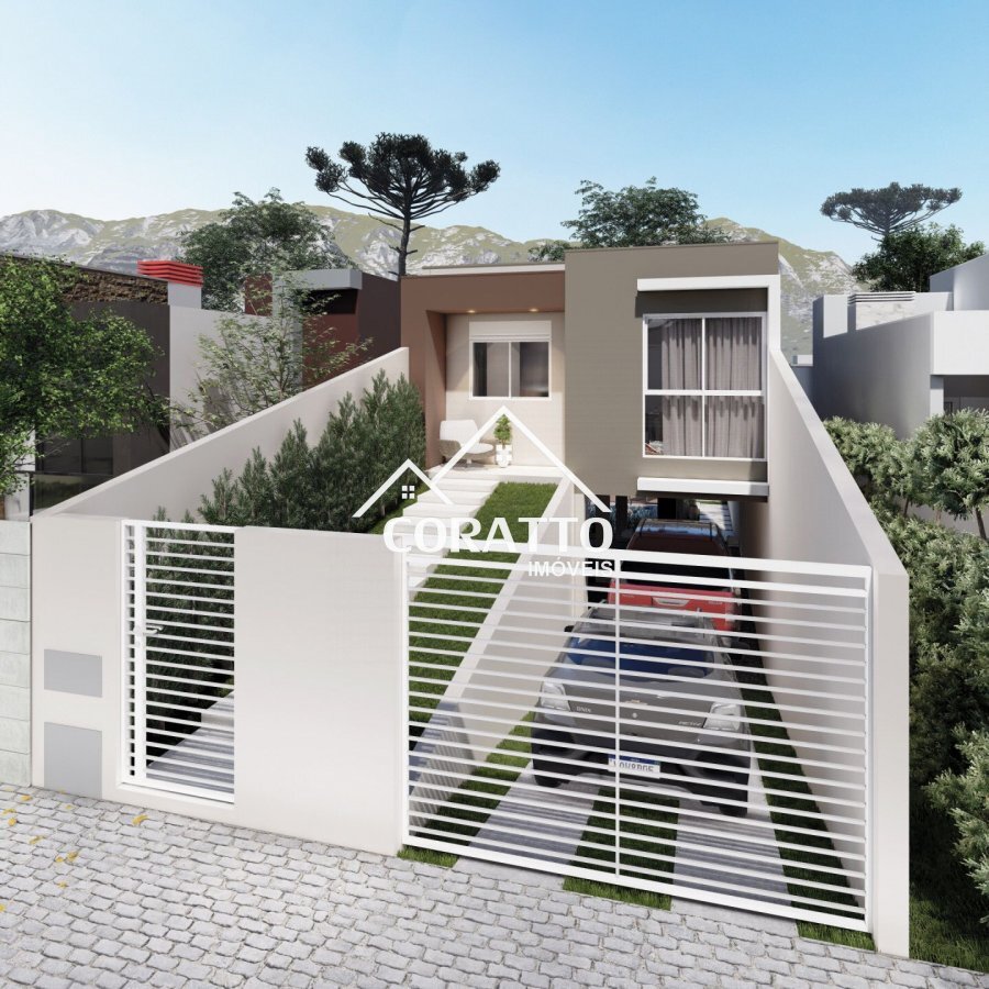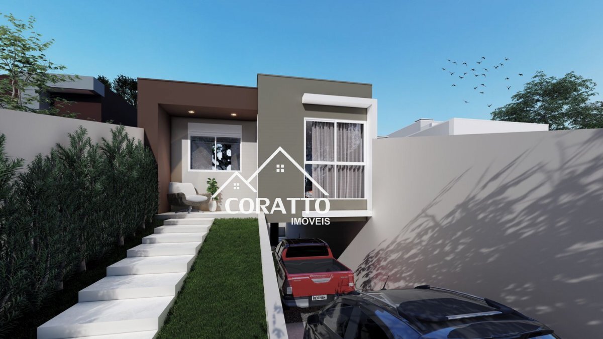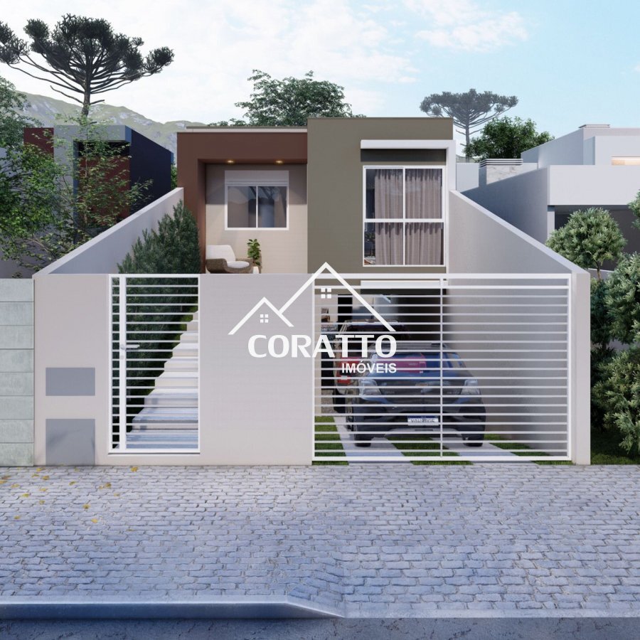 Composta por 2 dormitórios, living integrado, banheiro social, varanda, lavanderia e garagem p/ 2 veículos.