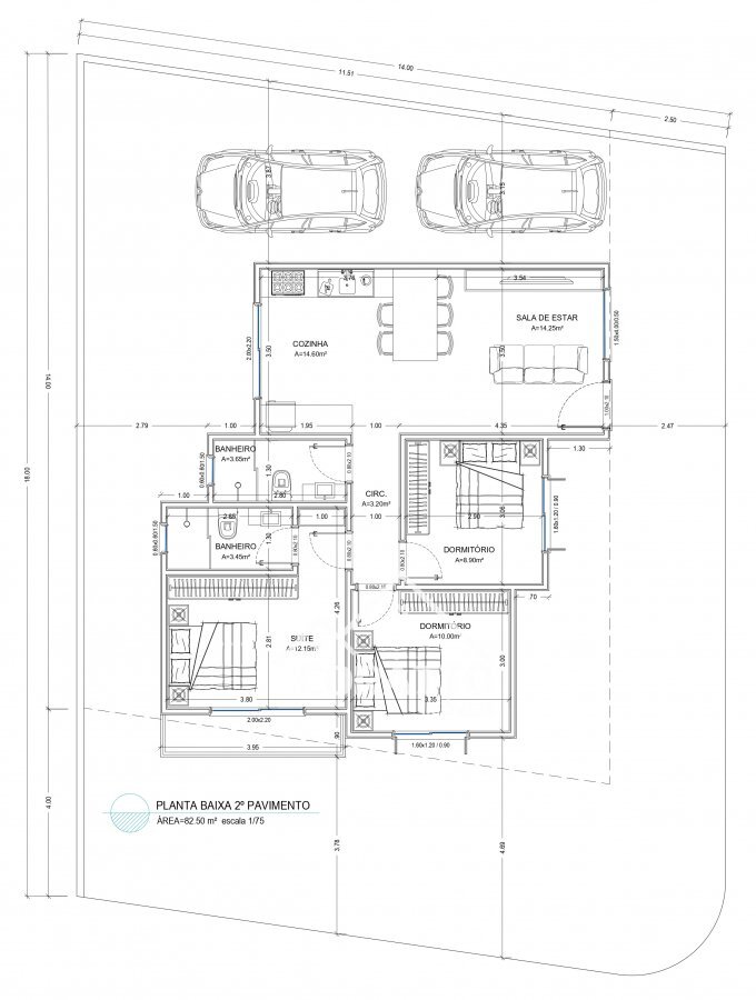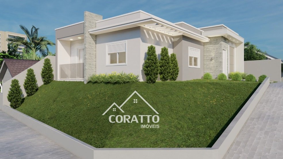Projeto com 85m² construídos contempla 3 dormitórios (sendo 1 suíte), sala de estar/jantar, cozinha em conceito aberto, área de serviço e vaga p/ 2 veículos.