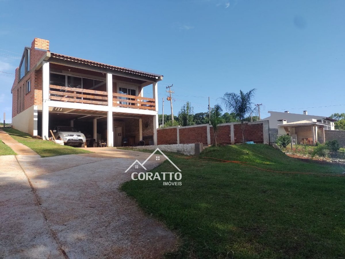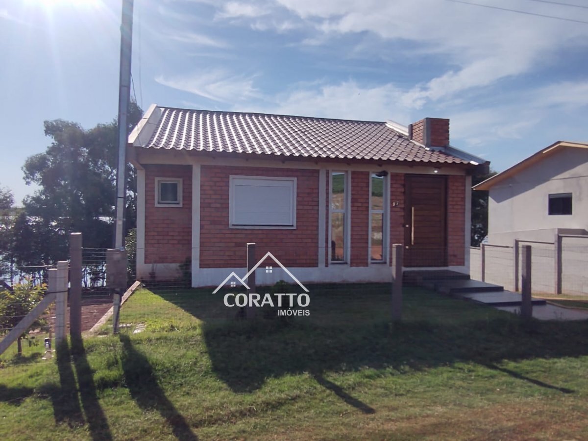 São 220m² de área construída, 2 dormitórios, e banheiros, sala de estar com lareira, sala de jantar e vaga de garagem para até 4 veículos.